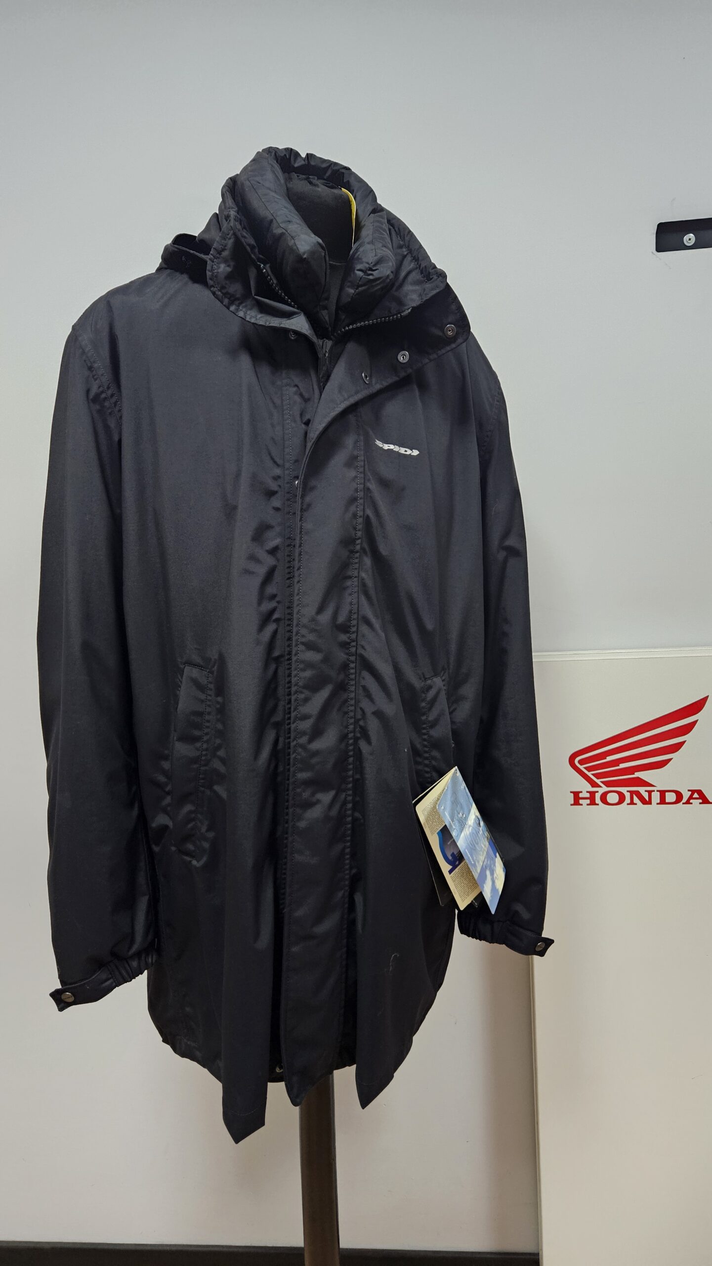 Un prodotto che ha ricevuto il successo nelle città più importanti del mondo, viene rinnovato nel tessuto esterno. La finitura a 2 strati dona comfort ed una maggiore facilit duso, prolungandone cos lutilizzo fino a primavera inoltrata. Tessuto in poliammide 2 strati da 160 gr mq Impermeabile traspirante frangivento nastrato H2Out Fodera trapuntata removibile con ovatta gr 150 mq Colletto in piumino doca Fodera in rete traforata sopra alla membrana interna per migliorare la dispersione dell’umidit Protezioni certificate CE Multitech Possibilit di inserire back protector z54 Zone reflex per il riconoscimento notturno 2 tasche esterne 1 tasca Napoleone sottolista 4 interne di cui una impermeabile Zip di chiusura a doppio cursore Cappuccio impermeabile removibile Coulisse di restringimento sul fondo.